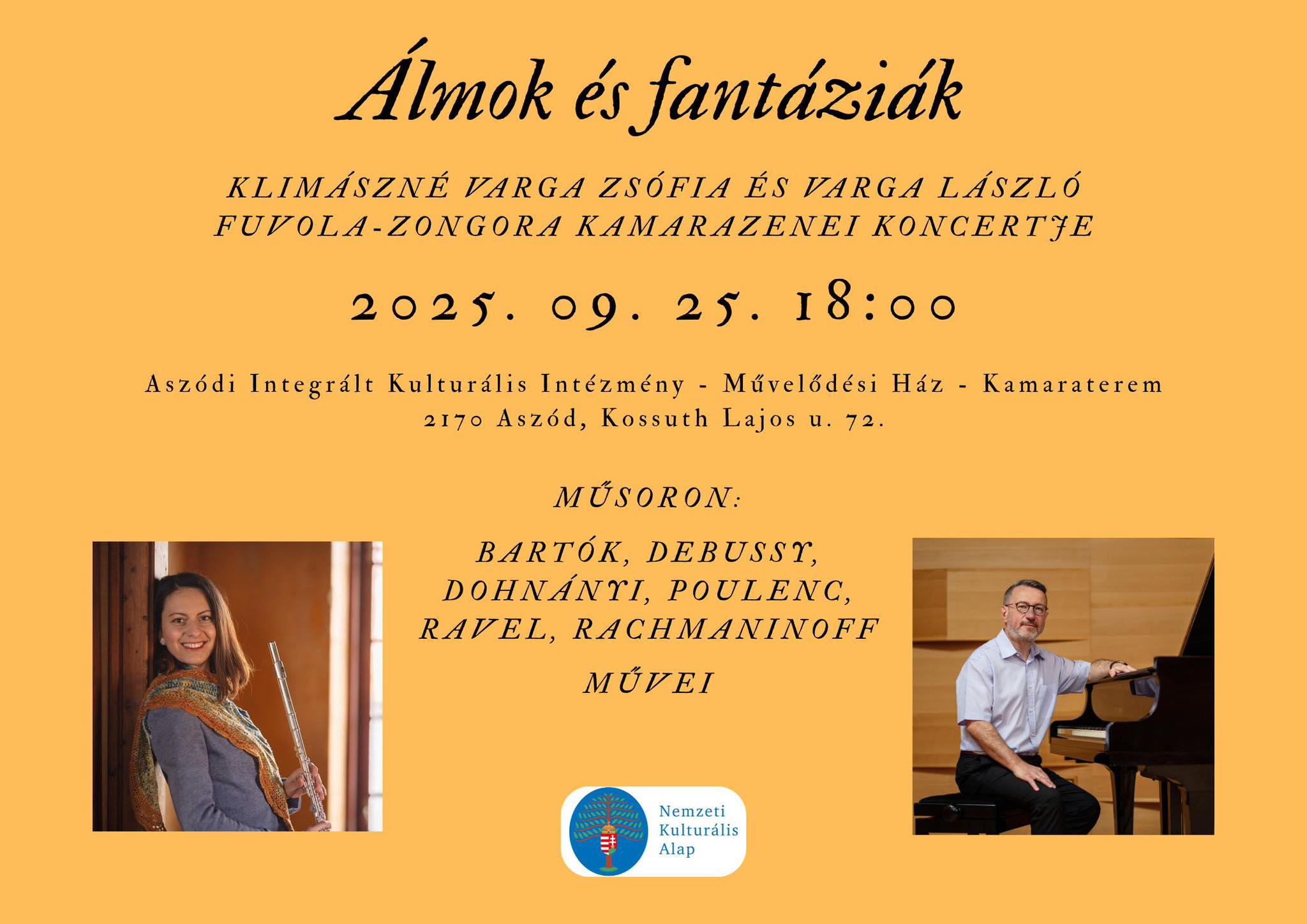 Klimászné Varga Zsófia és Varga László fuvola-zongora kamarazenei koncertje.